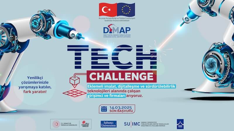 Sabancı Üniversitesi SU-IMC bünyesinde yürütülen DiMAP – Doğrudan Dijital Üretim Platformu Projesi, yenilikçi girişimcileri, startupları ve KOBİ’leri desteklemek için hayata geçirilen Tech Challenge programı ile büyük bir fırsat sunuyor! 🚀